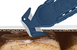 此安全刀為智能刀具,無需鋒利刀尖。 安全刀沒有鋒利的刀尖。為此,安全隔開刀片,確保在打開包裝時,刀片不會傷害到您或您的包裝商品。
